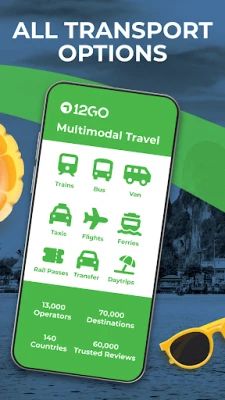 12Go app is an online travel agency on your phone that offers various means of transportation like trains π, buses π, boats β΄οΈ, transfers, vans π, taxis π and flights βοΈ to your desired destination anywhere, regionally and worldwide πΊοΈ. We provide budget travel options in more than 70,000 locations from over 140 countries, including: