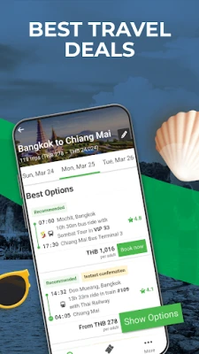 2) On of our search results we will provide you our "Best options" with best & most popular travel deals, below you can also find "Other options" separated by type of transportation