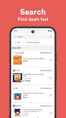 - Tap the plus (+) icon straight from search results to save a deal to your shopping list.
