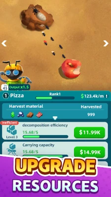 Through every forage and adventure, you can not only enhance your ant army but also easily earn resources for: