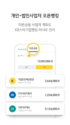 - 증권, 카드, 손해보험 등 KB금융그룹의 다양한 서비스를 하나로 연결하여 관리
