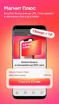 1 бонус = 1 ₽. Получайте до 2% кешбэка за покупки в магазинах и заказы с доставкой и самовывозом. Оплачивайте бонусами до 50% чека на кассе или в приложении.